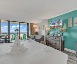 When you stay at this apartment in Myrtle Beach, you'll be on the beach, a 1-minute drive from Myrtle Beach Beaches and 8 minutes from Broadway at the Beach. This beach apartment is 4.7 mi (7.6 km) from Myrtle Beach Boardwalk and 4.4 mi (7.1 km) from Myrtle Beach Convention Center.