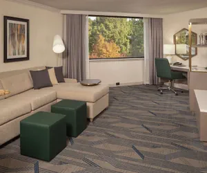 When you stay at Hilton Durham near Duke University in Durham, you'll be in the business district, a 4-minute drive from Duke University Hospital and 6 minutes from Duke University. This hotel is 10.5 mi (16.8 km) from University of North Carolina and 10.6 mi (17 km) from Research Triangle Park.