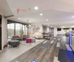 When you stay at Clarion Pointe Greensboro Airport in Greensboro, you'll be in the business district, within a 15-minute drive of First Horizon Coliseum and High Point University. This hotel is 12.9 mi (20.7 km) from North Carolina A and T State University and 2.7 mi (4.4 km) from All-A-Flutter Butterfly Farm.