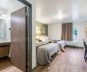 With a stay at HomeTowne Studios & Suites by Red Roof Bentonville, you'll be centrally located in Bentonville, a 4-minute drive from Walmart Headquarters and 8 minutes from Crystal Bridges Museum of American Art. This hotel is 10.6 mi (17.1 km) from Beaver Lake and 1.3 mi (2.1 km) from Painting with a Twist Bentonville.