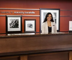 When you stay at Hampton Inn Iowa City/Coralville in Coralville, you'll be near the airport, a 4-minute drive from University of Iowa and 8 minutes from University of Iowa Hospital and Clinics. This hotel is 0.9 mi (1.4 km) from Xtream Arena & GreenState Family Fieldhouse and 0.9 mi (1.4 km) from Johnson County Historical Society.