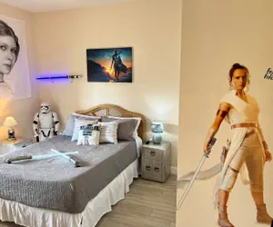 Star Wars Bahama Bay Disney area Gated Resort 10 Miles to Magic Kingdom, Private Sandy Beach, Free Kiddy splash park, 4 Pools, hot tubs, Beach Volleyball, Tennis, Pickle ball, Shuffleboard, basketball & more! This furnished 3 Bed 2 Bath Villa, 1 King, 1 Queen, plus 2 twin beds, Plush towels, soft linens, 76" Flat Screen, full kitchen includes cookware, utensils, & glassware. living room-dining room, screened balcony, Full Sized in-unit laundry, Pac n Play & highchair. Star Wars Themed Bahama Bay A Disney area Gated Resort Just 10 Miles to Magic Kingdom, offers a Private Sandy Beach, Free Kiddy splash park, 4 Swimming Pools, hot tubs, Beach Volleyball, Tennis, Pickle ball, Shuffleboard, basketball & more! This Fully furnished ground floor, 3 Bed 2 Bath Villa, 1 King, 1 Queen, plus 2 twin beds, Fresh Spa Robes & slippers, Plush towels, soft linens, 76" Oled Flat Screen, fully equipped kitchen includes cookware, utensils, & glassware. living room-dining room, screened balcony, Full Sized in-unit laundry, Pac n Play & highchair. Please check our reviews! We Strive to provide a 5-star experience. we do our best to provide all items our guest could need during their stay and enjoy returning guest! our resort is very close to shopping, restaurants and the Parks. This Relaxing Resort has plenty to do between park visits.